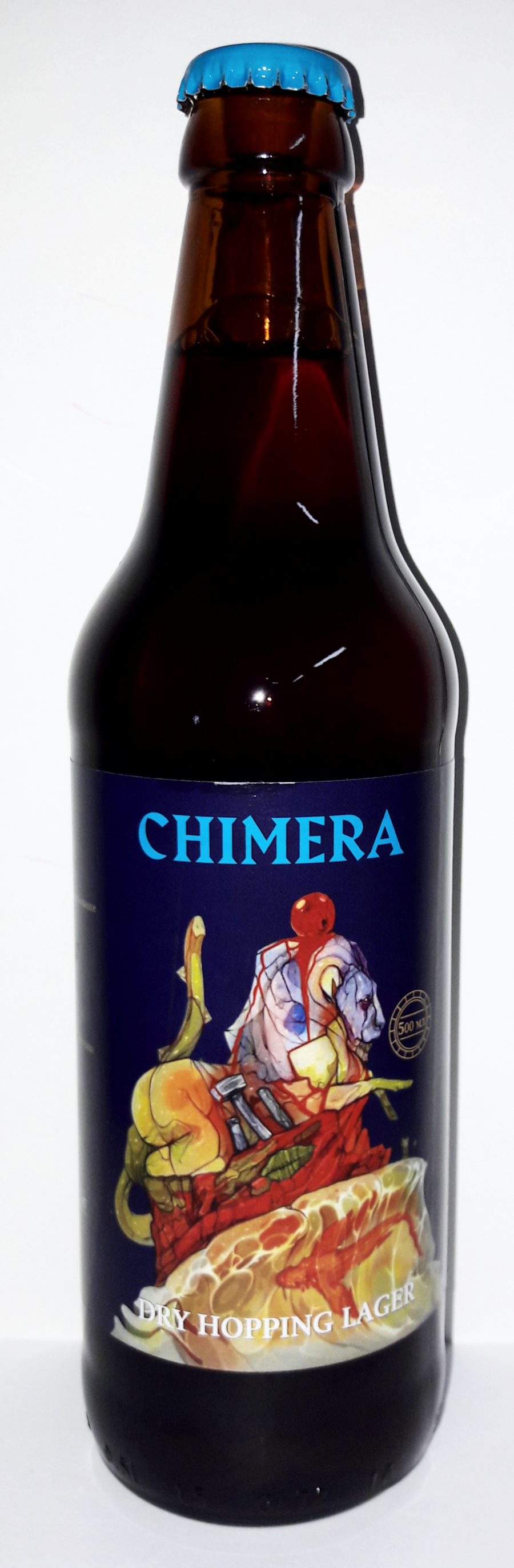 Химера в греческой мифологии-это чудовище с головой и шеей льва,туловищем козы,хвостом в виде змеи;порождение Тифона и Ехидны.в переносном смысле-необоснованная,несбыточная идея.Пивоварня дала такое название пиву,потому что это лагер.И пивоварня приставила ему "голову и шею льва"-букет хмелей,который полностью меняет понимание этого продукта.