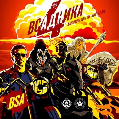 Яркий представитель своего стиля - Бельгийских крепкий темный Эль. Темный ближе к черному цвет Эля, с огромной плотной кремовой шапкой. Довольно горький сорт со сложной богатой солодовой сладостью, которую формируют карамельный солод и малина, которая ощущается в послевкусии и дает интересный аромат. За интересным вкусом скрывается необычайная крепость, благодаря которой эль и получил название 4 всадника, которые олицетворяют 4 состояния души и тела в момент его употребления.