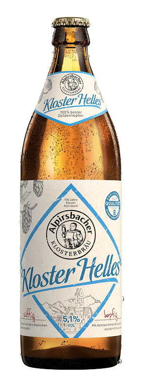 Kloster Helles отличается насыщенным, теплым золотисто-желтым цветом и имеет мелкопористую пенную корону. Он яркий и отчетливо пахнет цветочными и фруктовыми шишками хмеля. Гармония между сладкими солодовыми вкусами и лестной горечью была достигнута идеально. В первом вкусе развиваются нотки мягкого солода, а затем следует элегантная горькая нота. Тонкий эталон подчеркивает цветочные, фруктовые ноты солодовой сладостью и прекрасно уравновешивает игру ароматов.По сравнению с популярным Алпирсбахер Специал пивовары дифференцируют Альпирсбахский Хеллес в основном другим хмелем.