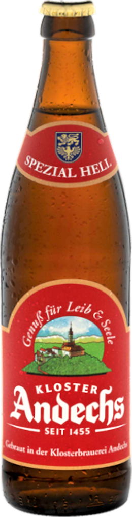 Фирменное светлое пиво Andechser, известное праздничное пиво от Andechser Bräustüberl, выдержано, ярко-золотистого цвета.