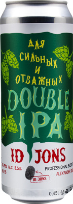ID Jons DIPA — новинка в ассортименте, мощный, плотный двойной ИПА, сваренный для сильных и отважных. В его производстве пивовары использовали хмель сортов Коламбус, Мозаик, Цитра и Кашемир. Пиво обладает плотностью 19%, крепостью 8,5%, уровнем горечи 55 IBU и имеет двойную дозу хмеля. Отсутствие фильтрации сохраняет натуральный осадок, придавая пиву деликатную туманность цвета. Пиво разливается в жестяные банки с ярким дизайном.
