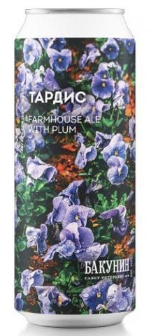 Тардис от Бакунин - пиво сварено в стиле сельский эль (Farmhouse Ale) с добавлением пюре сливы. Тардис продолжает серию фармхаус элей. Нежная сливовая сладость во вкусе, мягкий, пряный аромат хмелей Columbus и Cascade и освежающее послевкусие.