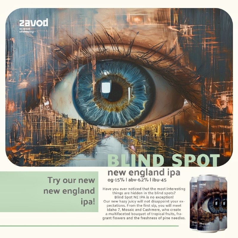 Вы когда-нибудь замечали, что в слепых зонах скрываются самые интересные вещи? Blind Spot NE IPA – не исключение! Новый хэйзи-джуси, не обманет ваших ожиданий. С первого глотка вам уготована встреча с Idaho 7, Mosaic и Cashmere, создающими многоплановый букет из тропических фруктов, благоухания цветов и свежести хвои!
