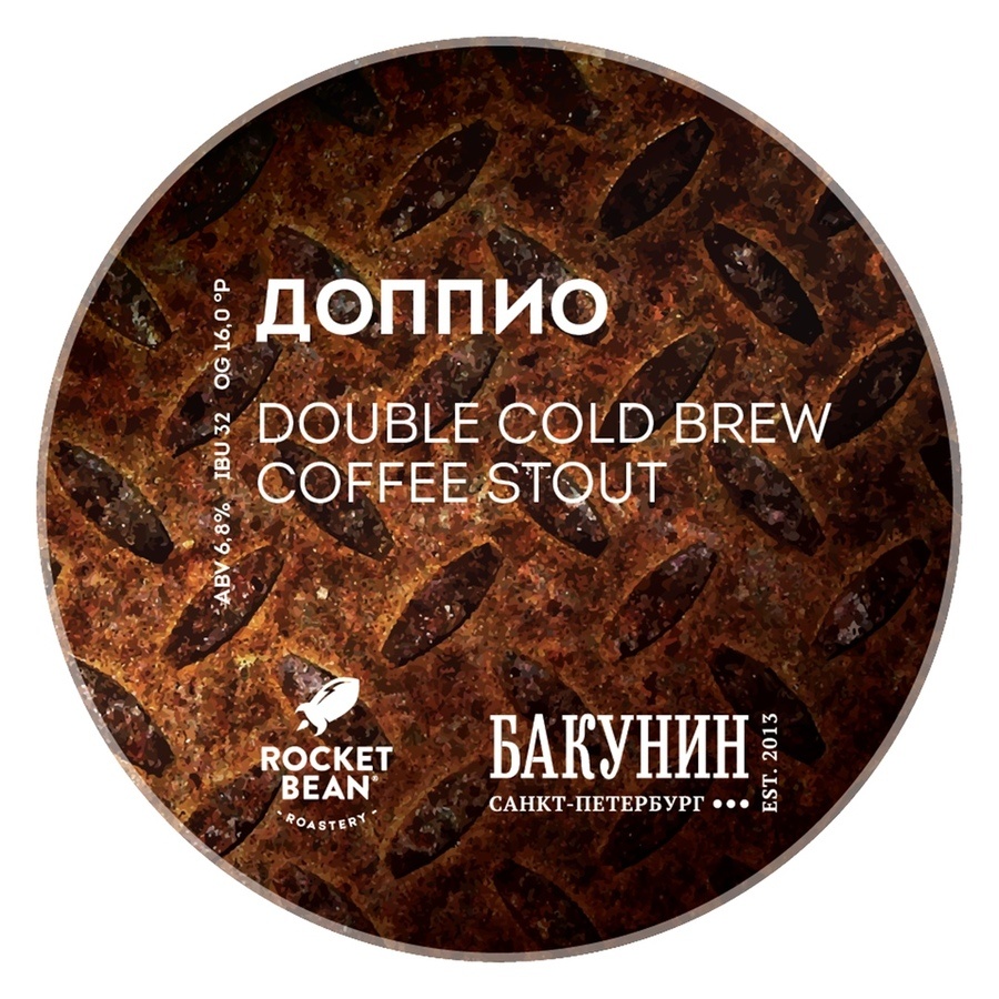Как вы знаете, география варок Бакуни простирается за пределы Петербурга, вплоть до славной страны Латвия. В те края представители команды ездят на регулярной основе за рулем собственных авто, что, конечно, выматывает. Одно из немногих средств спасения и поддержания тонуса – свежезаваренный кофе. Вот и в Риге у пивоварни есть друзья, к которым они часто наведываются, дабы прояснить уставший взгляд – Rocket Bean Roastery. В одно прекрасное утро пивоварне пришла идея отправиться из кофейни на варку с щедрой порцией их cold brew coffee на основе бразильских зёрен, лично обжаренных парнями. Именно он и использовался при создании Доппио.