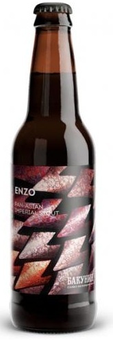 Enzo от Бакунин - пиво сварено в стиле Имперский стаут (Imperial Stout). Паназиатский фьюжн вкусов и ароматов: Enzo — имперский стаут, дерзко сочетающий сладость и остроту. Вкус распадается на уровни: вступительная пряная свежесть от мяты и цедры апельсина, колющее послевкусие имбиря и перца чили и шоколадный финал, заряженный специями. Густой, кофейно-шоколадный стаут.