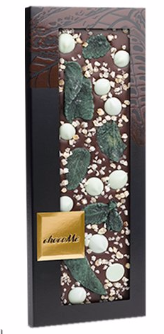 Элитный шоколад ручной работы "ChocoMe" Fortina Finest Selection. "ШокоМи" - горький шоколад ручной работы уникального вкуса со следующими топингами: засахаренные листья курчавой мяты, засахаренная лимонная цедра, шоколадные пастилки с лаймом.