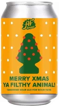 Merry Xmas Ya Filthy Animal! от AF Brew - пиво сваренное в стиле Кислый эль (Sour Ale) с добавлением елки и мандаринов. Официальные ароматы русских зимних праздников упакованы в милую и освежающую пивную банку.