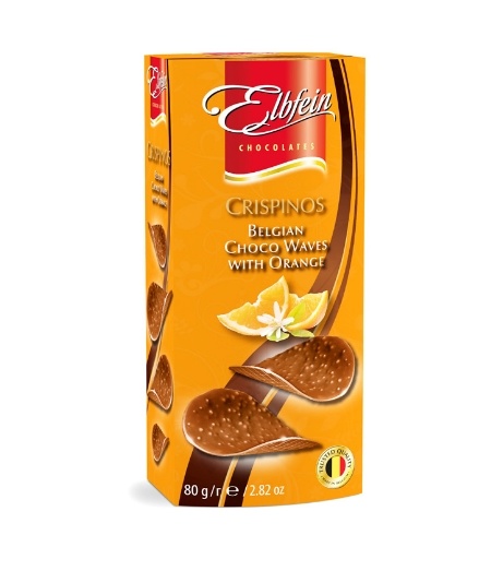 Десерт хрустящий, молочный, из бельгийского шоколада в виде чипсов.Вкус апельсиновый.