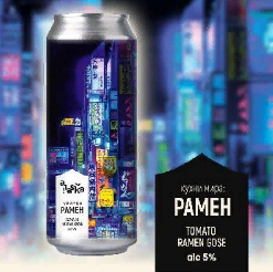 Рамен на рыбно-грибном бульоне с добавлением кимчи, соевого соуса, сока лайма и ,конечно, много томатов.