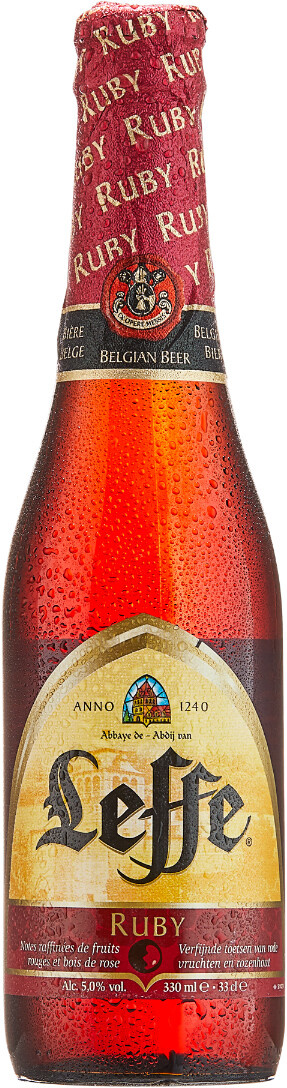 Leffe Ruby — относительно новое пиво от Леффе, появившееся в ассортименте пивоварни в 2008 году. ЛеффеРуби — это красное пиво, сваренное с добавлением фруктов и ягод (бузина, черника, клубника ). Красное фруктовое пиво от Леффе стало настоящим инновационным продуктом. В Бельгии производится много различных фруктовых сортов пива, но ни одно из них не было произведено на основе настоящего аббатского пива. Пиво обладает достаточно низким по сравнению с аналогичными сортами уровнем алкоголя и характерной для фруктового пива сладостью во вкусе.