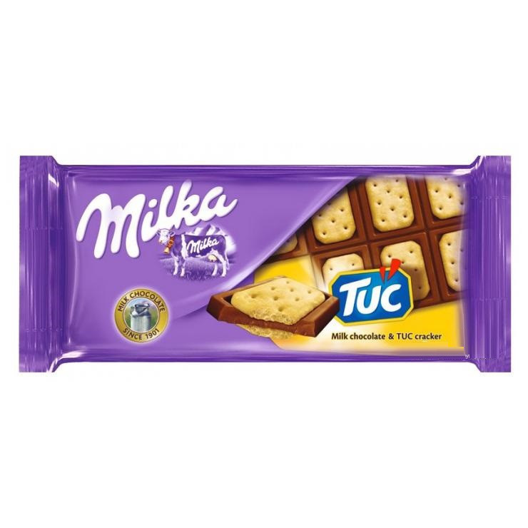 Шоколад Milka молочный с соленым крекером Tuc.