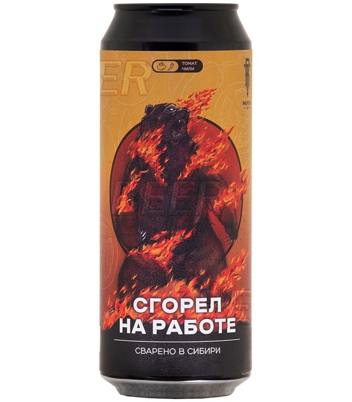 Сгорел на работе— нефильтрованный, непастеризованный, неосветленный эль, сваренный в стиле Sour Tomato Gose с добавлением базилика и острого кайенского чили перца. "Благодаря суровому климату нашего региона томаты сибирской селекции обладают особым вкусом и отлично подходят для того, чтобы приготовить из них сочное томатное гозе! И все это великолепие приправлено базиликом с бабушкиного огорода и острым кайенским чили перцем!.