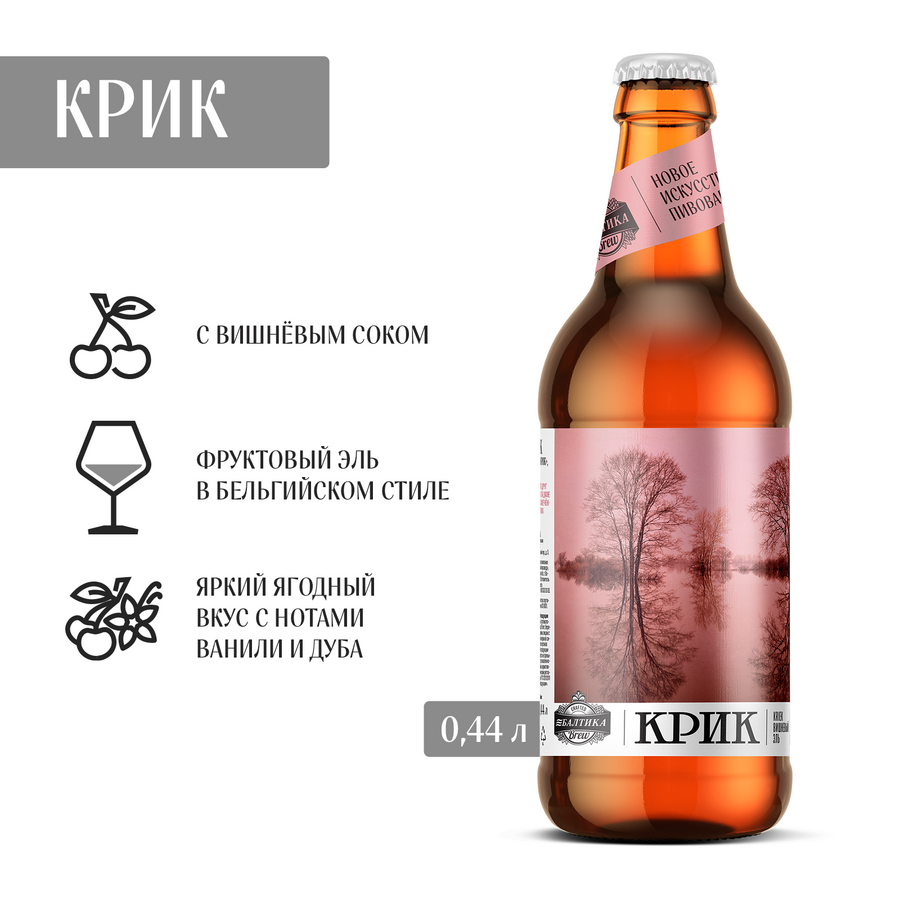 Балтика Брю Крик Бутылка 0,44 – яркий фруктовый вкус и лёгкая кислинка! Балтика Брю Крик — это пиво, которое удивляет сочетанием яркой вишнёвой кислинки и мягкой солодовой базы. Насыщенный фруктовый вкус и легкая горечь делают его идеальным напитком для тех, кто ищет необычные и смелые сочетания в пиве. Это пиво идеально сочетается с фруктовыми десертами, сырами и лёгкими закусками. Подавай охлаждённым для того, чтобы насладиться его полным вкусом. Балтика Брю Крик — это пиво, изготовленное с использованием натуральных ингредиентов, с добавлением вишнёвого сока. Продукт поступает прямо с завода, что гарантирует свежесть и отличное качество. Ты можешь купить Балтика Брю Крик в магазинах при пивоваренных заводах Балтика, а также заказать с удобным самовывозом.