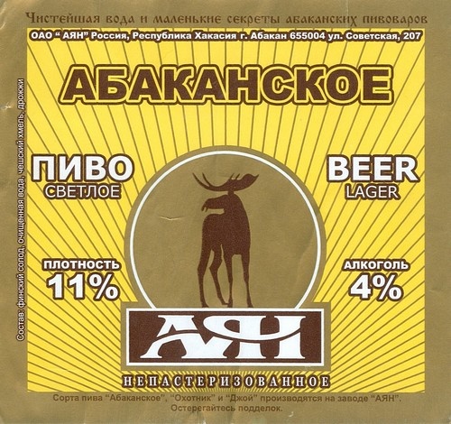 Светлое Абаканское пиво обладает приятным хмелевым ароматом, мягким солодовым вкусом и легкой хмелевой горчинкой. Для производства «Абаканского» используют специально подготовленную воду, лучшие европейские сорта солода и хмеля, а также специальный сорт чешских пивоваренных дрожжей.