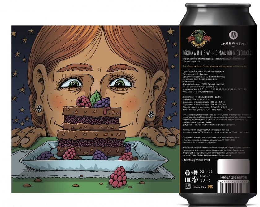 Smoothie Pastry: Пюре малины, пюре ежевики, шоколадный брауни, шоколадное печенье. Collaboration with Brewmen.