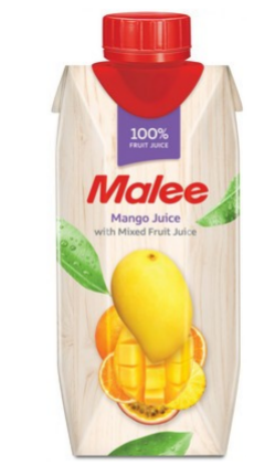 Сок непрозрачного яркого желто-оранжевого цвета. Сильный аромат сока сложен из доминанты нот спелого манго в окружении оттенков ананаса, Вкус сока — густой, приятный, гармоничный, сладковатый и освежающий, с характерными нотами спелого манго и экзотических фруктов. сок манго (35%), смешанный с миксом фруктовых соков (ананас — 25%, апельсин — 25%, маракуйя — 15%) от известного тайского производителя соков Malee. Сок получают методом восстановления из концентрата без добавления сахара, красителей, консервантов и ароматизаторов. Напиток обладает не только приятным освежающим вкусом, но и множеством полезных свойств. Ярко-желтая окраска плодов манго говорит о высоком содержании каратиноидов, предшественнике витамина А.
