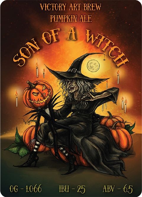 Тыквенный эль Son Of A Witch!Презентация 31 октября 2015 года.В состав пива вошли три вида солода,три сорта хмеля,а так же целый набор пряностей- анис ,корица, гвоздика, имбирь, душистый перец ,мускатный орех и малагетта.